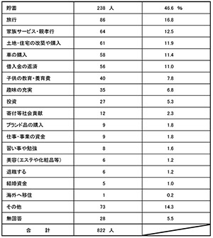 最多は「貯蓄」で238人(47%)!堅実な結果となった。
