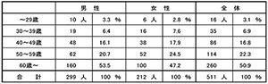 次点は、男性が「50代」が62人(21%)。女性も「50代」が52人(25%)となっている。