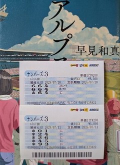 ![]() [「闘尿日記G」] 2025年7月16日 ![]() 本誌7月号必勝パラダイスコラム「664」グランドスラム狙いでした。 第6766回「324」をミニ当せん♪ ミニストレート未出現狙いでした。 〜〜〜〜〜〜〜〜〜〜〜〜〜〜〜〜〜〜〜〜〜〜〜〜〜〜 4月20日(日)昨日主治医が来て「月曜日に退院してもいいですよ」と言ってくれた。「やっと退院できるぞ〜!」お昼に1人入院患者が入って来て3人になった。私のベッドの真正面のベットだ。60代後半?くらいで、顔色が浅黒く目つきも悪く、痩せぎすでちょっと怖そうな人だった。帯状疱疹が下半身に広がってるみたいで、めっちゃ痛がっていた。明日が退院なので、一晩我慢すればいいか!今日は1日中カーテンを閉め、パソコンのティーバーでゴルフ番組ばかり見ていた。「早くゴルフがしたいな〜」そうそう、例の「愛してるよ」おじいちゃん、20歳の新人看護師に「○○ちゃんはカワイイね〜、マスクはずして顔見せて!」は、セクハラじゃね?怒鳴り散らしたりしてあきらかにパワハラだろ?って思う患者もいるので、看護師も大変だなぁ〜と思う。マスクをしていると誰も可愛かったり美人に見えるし……、また男って自分もそうだけど、弱ってるときに優しくされると看護師が「白衣の天使」に見えてきて好感を抱いたりする。私の友達にも入院中に看護師と付き合い結婚した人もいるし、患者だった人と看護師の夫婦も多いのでは?しかし、看護師も人それぞれで優しい人ばかりではないので、相性が合う合わないの違いかもな? 4月21日(月)夜中は3時頃からなかなか寝付かれず、朝までウトウトしていた。6時半におしっこをした後に、ぼうこうにどれくらい残尿があるかエコーで調べる尿量チェックは50mlと少なくてよかった。主治医が来て10時には退院していいと言い、薬も飲まなくていいそうだ。次回の外来は5月12日9時半だ。今日はお店が定休日で、妻が9時頃入院費のお金をもって来てくれた。ナースセンターにお菓子を差し入れしてたみたいで、「ありがとうございます」と婦長にお礼を言われた。入院費はめっちゃ安くてビックリ!20万以上?払うのかと思って30万持ってきたが……、高額療養費の適用と保険で「57600円」食事代「10710円」の総合計「68310円」で済んだ。家に帰って、しばらく顔を見ていない愛犬2匹がどんな反応をするだろう?とこっそり庭の見えないところに隠れて、「ココア、イブ!」と名前を呼ぶと、走って飛んできてすぐに見つかった。しばらくまとわりついて、ペロペロとなめられた。カワイイやつだぜ!猫のにゃんたろうはいつものように、寄り付きもせず知らん顔だ。荷物をかたずけ、お店に行きナンバーズの当せん画像を撮って、ケータイコラムを書いて送り、ナンバーズを買いに行った。ダイレックスで牛肉を買い、晩ご飯は久しぶりに焼肉を食べて、缶ビールを1本飲んだ。入院中は間食もせず、質素な物足りない食事で、お腹もへこみ体重も1〜2キロくらい落ちていたが……、だんだん元に戻りそうだな〜。 ――つづく。 〜〜〜〜〜〜〜〜〜〜〜〜〜〜〜〜〜〜〜〜〜〜〜〜〜〜 今回のおすすめN3は、第6767回終了現在、第6672回より95回出現なしのボックスペア未出現 [39] 狙いで 10点。 [093] [293] [593] [693] [793] [193] [393] [493] [893] [993] 超速ロト・ナンバーズTOPへ(C)イマジカインフォス