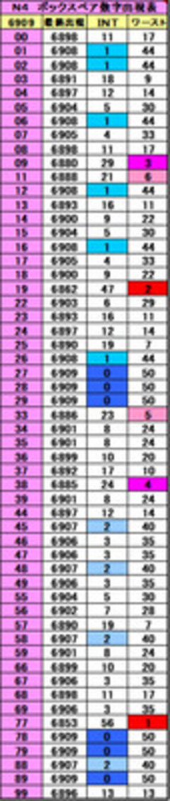 ![]() [「ナンバーズ4未出現データ、1/30まで」] 2026年2月3日 ![]() 節分で豆はまいたけど、「福は内!当たりも内!」と叫んだ方、正解です。数字も追い払うより、呼び込むほうが大事。 短い2月、短気は損気、外れは準備運動。当たりは、忘れたころに全力で走ってきます。 今月も、データを活用して数字と勝負していきましょう。 では、本題のデータに移ります。 1月30日(金)第6909回 N4[9827]抽せん終了現在のデータ。 ■N4 位別未出現情報 千の位未出現 [5]が第6881回★★★★ [3]が第6885回★★★ 百の位未出現 [7]が第6883回★★★ [3]が第6891回★ 十の位未出現 [4]が第6887回★★ [5]が第6894回 一の位未出現 [3]が第6892回★ [1]が第6894回より出現なし。 ★マークは、私的見解と確率から見た出現期待度。最高は★5つが(MAX)です。 ボックスとは、並び順が異なっても、各数字が一致。(かっこ数字は最終出現回号) ■N4 ボックスペア未出現 【前回の結果】 バックナンバー「ナンバーズ4未出現データ、11/28まで」のコラムでお知らせしたデータから、すべて出ました。 今回更新分 @ 77(6853回)★★★★★ A 19(6862回)★★★★★ B 09(6880回)★★★★ C 38(6885回)★★★★ D 33(6886回)★★★ E 11(6888回)★★ F 25(6890回)★★ F 57(6890回)★★ H 03(6891回)★ I 37(6892回)★より出現なし。 ■N4 3けたボックス未出現 【前回の結果】 E 055 H 133 C 444 I 699 が出ました。 今回更新分 @ 111(6344回)★★★★★ A 499(6482回)★★★★★ B 222(6495回)★★★★ C 799(6536回)★★★★ D 788(6551回)★★★ E 456(6582回)★★★★ F 888(6596回)★ G 004(6651回)★ G 005(6651回)★ I 338(6671回)より出現なし。 未出現シングル(3つ違う) 1位は、[456](6582回) E位。★★★★ 2位は、[089](6677回) J位。★★ 3位は、[457](6691回) L位。★ ※順位はトータルの順位です。 ◆シングルペアは、[19]が47回出現なし。 [09][38][25][57][03][37]も出そうです。 ダブルペアは、[77]が56回出現なし。 [33][11]も出そうです。 ◆出ていない並びは @[大小大大] 第6868回★★★ A[小小大小] 第6873回★ @[奇奇奇奇] 第6871回★★ A[奇偶奇奇] 第6881回より出現なし。 ※小数字(0〜4)大数字(5〜9) ▼△▼△▼△▼△▼△▼△▼△▼△▼△▼△▼△▼ 今回のN4 おすすめ予想数字は、3けたボックス未出現シングル(3つ違う) 1位[456](6582回) E位と3位[457](6691回) L位を合わせて[4567] ボックス 1点。 ――つづく。 〜〜〜〜〜〜〜〜〜〜〜〜〜〜〜〜〜〜〜〜〜〜〜〜 今回のおすすめN3は、第6909回終了現在、第6836回より 73回出現なしのボックスペア[17]狙いで 5点。 [170] [172] [175] [177] [178] 超速ロト・ナンバーズTOPへ(C)イマジカインフォス