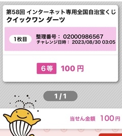 クイックワン ダーツで当選おめでとうございます🎉