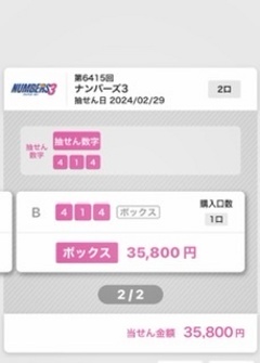 真弓さん、こんばんは!! ナン3ボックス当選おめでとうございます。 当選金額も大きくて良かったです☆ 3月も当たりが舞い降りますように♪